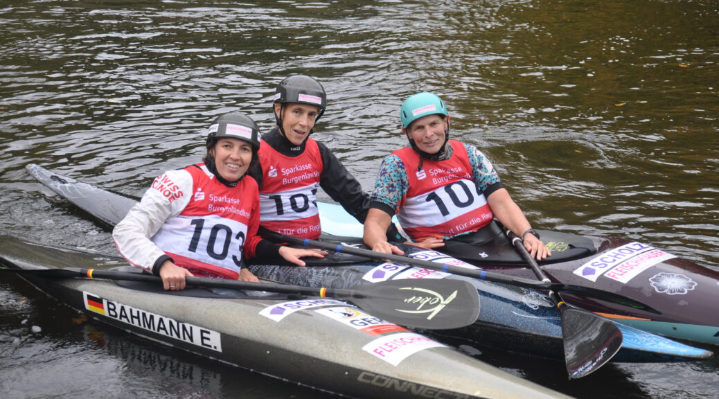 Zeitz. Einen warmen Medaillenregen gab es zum Abschluss der Wettkampfsaison für die Slalomkanuten des KSV Bad Kreuznach. Bei den German Masters in Zeitz, den deutschen Meisterschaften der Senioren, räumten die KSVler großflächig ab. Im Einzel zeigte einmal mehr Sandra Schmidt ihre Klasse. Sie gewann in der Altersklasse Ü55 nicht nur die Konkurrenz im Kajak-Einer, sondern auch im Canadier-Einer. Nach dem ersten Lauf hatte sie noch auf Rang drei gelegen, verbesserte sich aber im zweiten Durchgang deutlich und holte Gold.